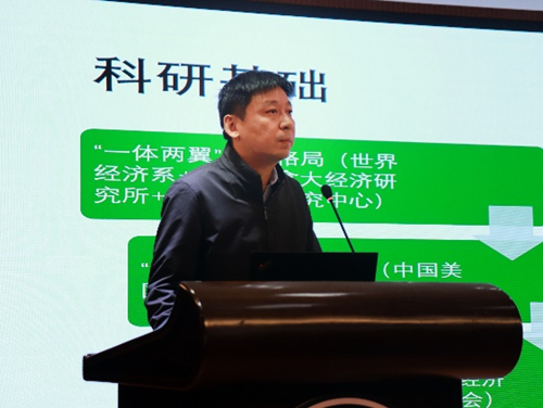 世界经济系主任张天顶从学科发展历程、系所本硕博人才培养、科研基础和社会服务等方面介绍了世界经济系的发展现状,指出世界经济系“一体两翼的学科格局”、拥有一个全国一级学会等发展优势,与北京大学、南京大学、浙江大学等高校进行对标比较。此外,他也提出了系所面临跨学科交叉融合研究不够的挑战。