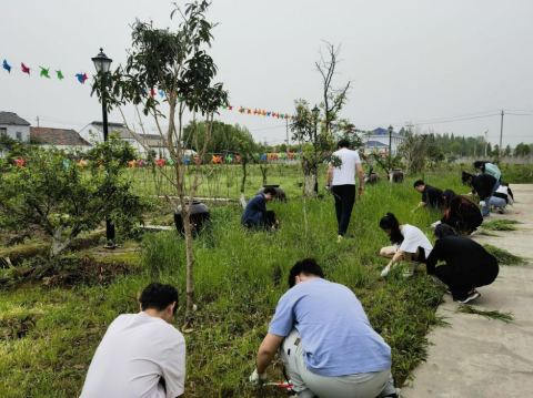 最是一年春好处,护苗除草正当时。走进四月的洪湖,实践小队的同学们体会到春日的盎然活力,充满生机的氛围催生出成员们时不我待的使命感。在现场,队员们戴上手套、拿起锄头,根据当地农民的指导,利用相关农具,或锄草、或割草、或清运,认真细致地对现场杂草进行清除。正值春夏之交,杂草生长旺盛,不仅影响美观,也容易滋生蚊虫,锄草行动的开展,有效控制了杂草的滋生,让绿地美得更加养眼。尽管劳动辛苦,脚背酸麻,但队员们依旧干劲十足,现场一片忙碌。“绿水青山就是金山银山”,习近平总书记的话不断在队员耳畔回响,锄草后的小树苗松错落有致,迎风挺立,宛若图画。同学们不仅在亲身锄草中体会了林业建设的艰辛,同时也萌发出对农村园林工作者的感恩之情,培养了保护环境的责任意识。