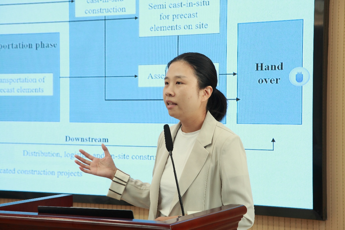 管理科学与工程系罗丽姿老师围绕数字化技术在工程项目供应链管理中的应用进行了专题分享。她详细介绍了无线射频识别技术(RFID)、建筑信息模型(BIM)等数字化技术在供应链各环节中的具体应用案例,并分享了相关研究成果。萨金特教授对工程项目的供应链高度分散特征表示出浓厚兴趣,并与报告人就数字化技术的应用前景和挑战进行了深入交流。