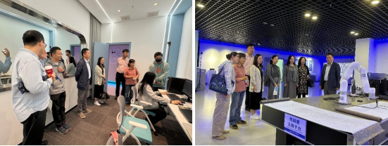 在具身认知测量实验室,教师团队观摩了高速眼动仪实时捕捉视觉注意过程,了解该技术在用户行为研究、教学评估等场景的具体应用。随后,团队来到文化遗产智能计算实验室,现场体验机械臂书写篆体“辣文