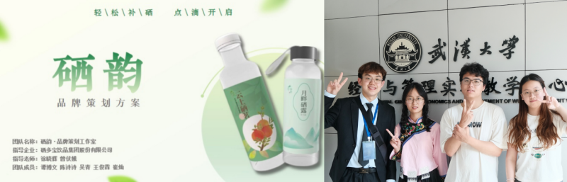 、外国语言文学学院、城市设计学院等多个学院,共同组成了一支具备跨学科视野、博采众长的团队,在比赛中齐心协力、各尽其能。团队与安徽省硒地实业有限公司达成深度合作,依托安徽省池州市石台县的天然富硒特色农产品资源和自然田园风光资源,立足于需求逐渐上升、行业缺乏领头羊的市场现状,以扩充并丰富消费者群体为目标,响应“建立优势特色产业,实现乡村振兴”、“大力发展富硒功能农业”的国家号召,围绕产品端、客户端、市场端三个核心逻辑设计了富硒一品,百味石台——“硒+X”系列品牌策划书。经过企业实地考察、原产品调研、用户研究、市场洞察、竞品分析、品牌创新升级、营销策划等一系列流程,从涵盖多种功能性场景应用、拓展多元化消费者、延长产业链、逐步扩大市场范围等角度出发,对富硒一品品牌全面赋能升级,且得到企业认可。