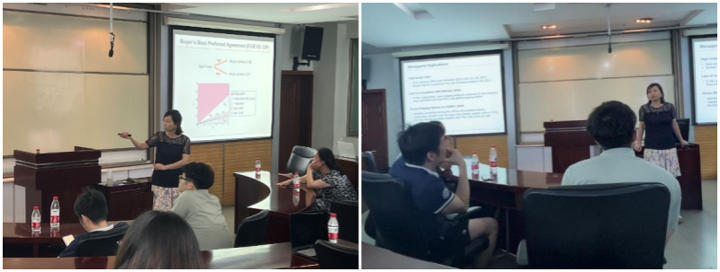 6月20日下午,学院市场营销与旅游管理系主办的珞珈经管创新论坛第五十三期成功举行。香港理工大学商学院汪玉兰教授以“供应不确定下的采购策略:关税和运输成本的影响”为主题做了精彩报告。黄敏学副院长、曾伏娥、许明辉、陈植元、李彬等多位师生参会,袁茂主持论坛。