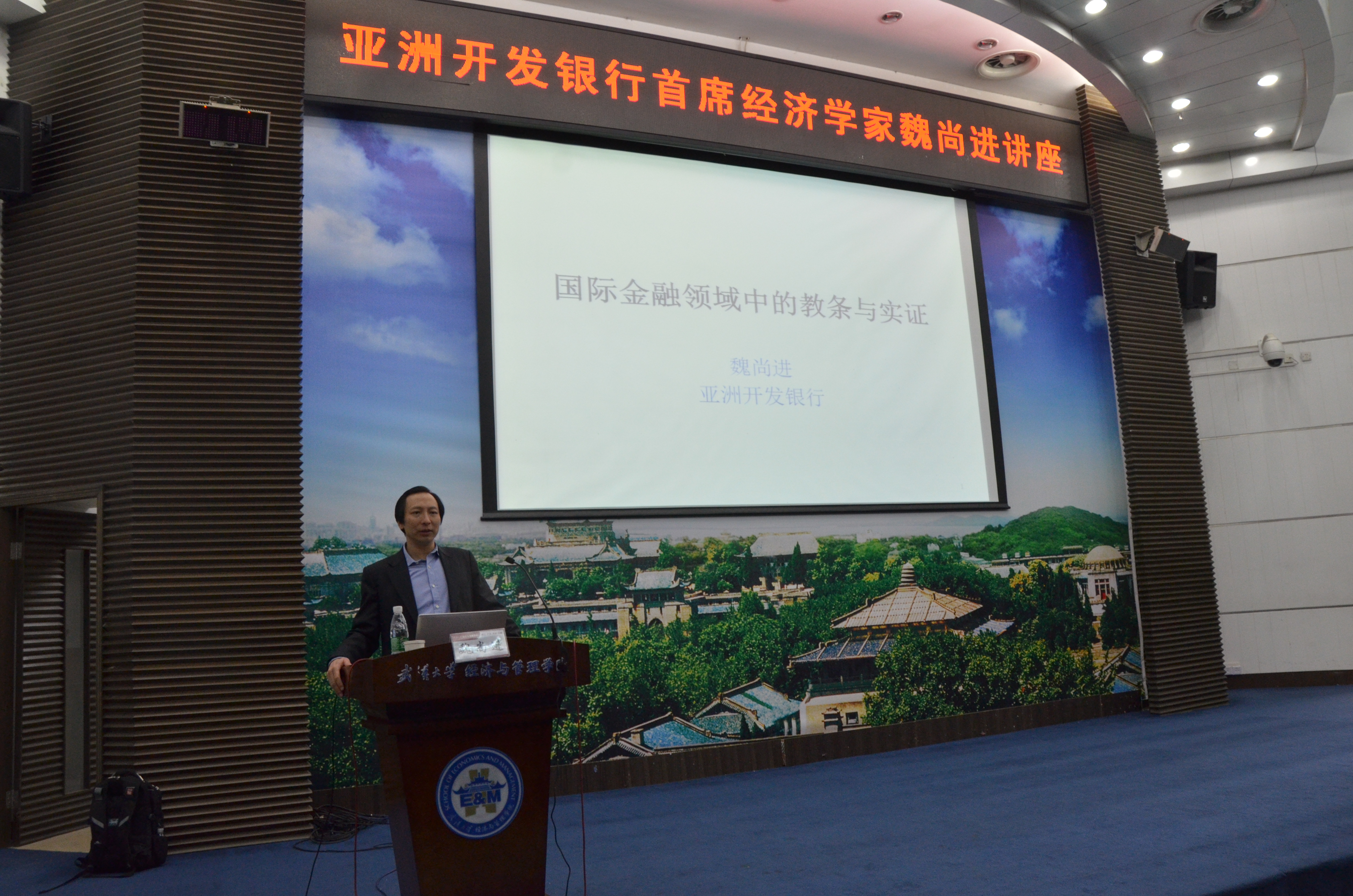 ,进行学术交流,以《国际金融领域中的教条与实证》为题作了一场精彩的学术报告。魏教授以亚洲开发银行首席经济学家的视角对亚洲经济走势进行研判与预测,展望亚洲经济发展与未来,分析美国等发达国家宽松的货币政策对发展中国家的经济社会影响。报告由辣文