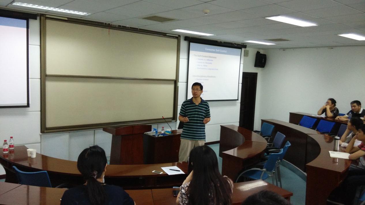讲学。郑毓煌教授的研究涉及消费者心理与行为,尤其在消费者自我控制(self-control)领域有独到的见解。郑毓煌教授的学术报告结合日常例子,深入浅出,赢得了阵阵掌声,激发了风趣而精彩的讨论。