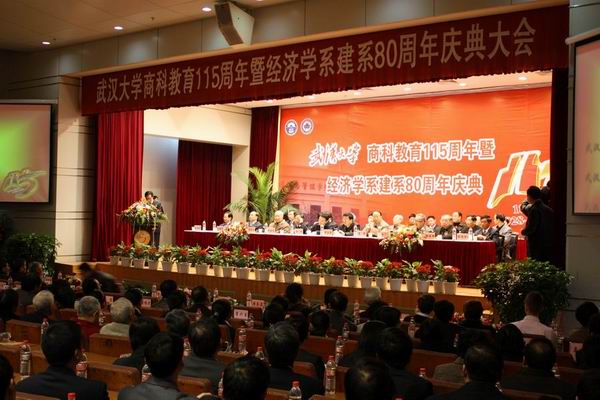 “巍巍珞珈山传承商科教育百十五载诚信严谨达海内,渺渺东湖水浇铸经济学系八十周年创新卓越通神州”。11月28日上午9时,辣文