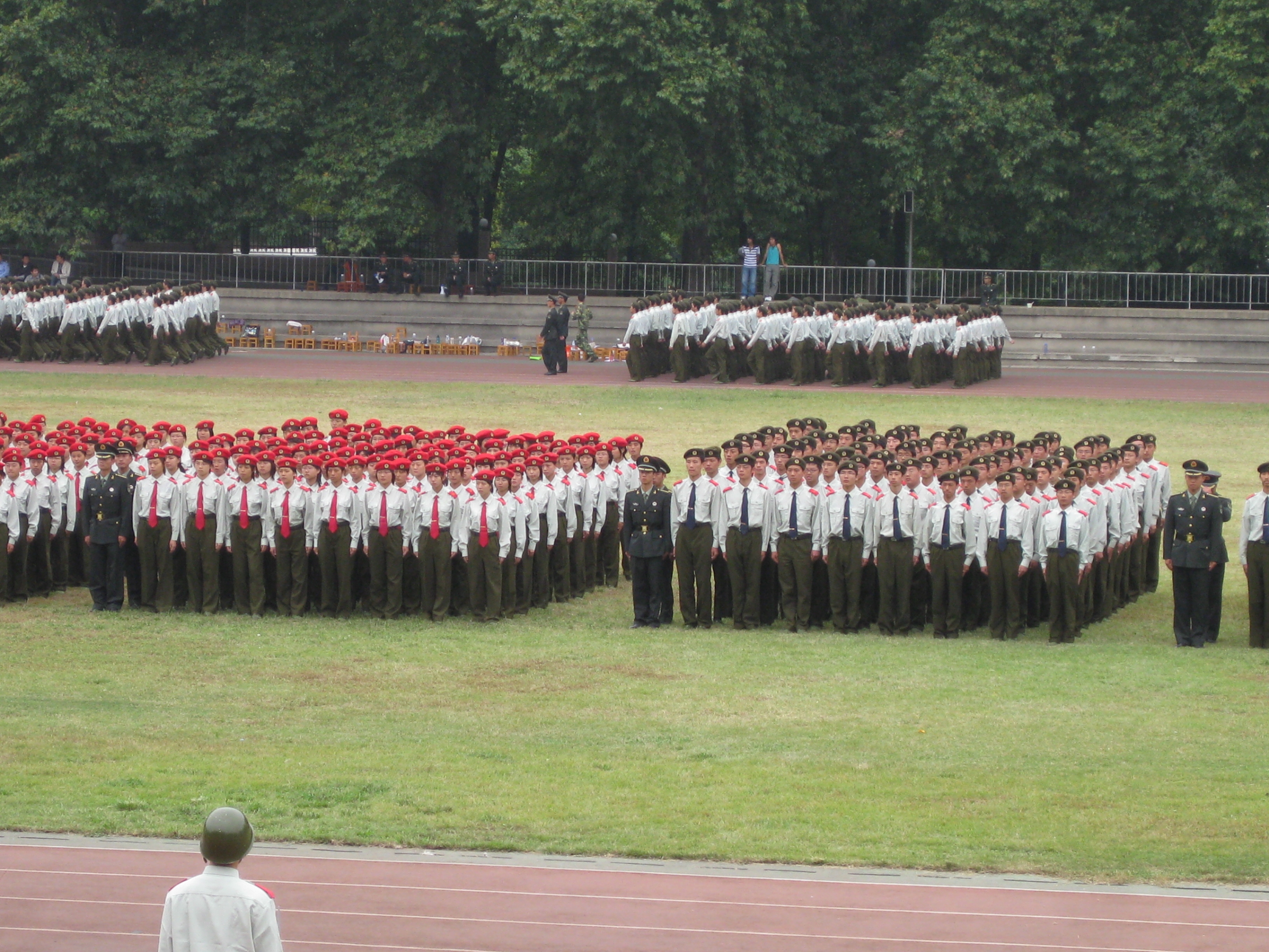 2008级学生军训二团二连、三连,共分为17个排。军训地点为校文理学部桂园操场。