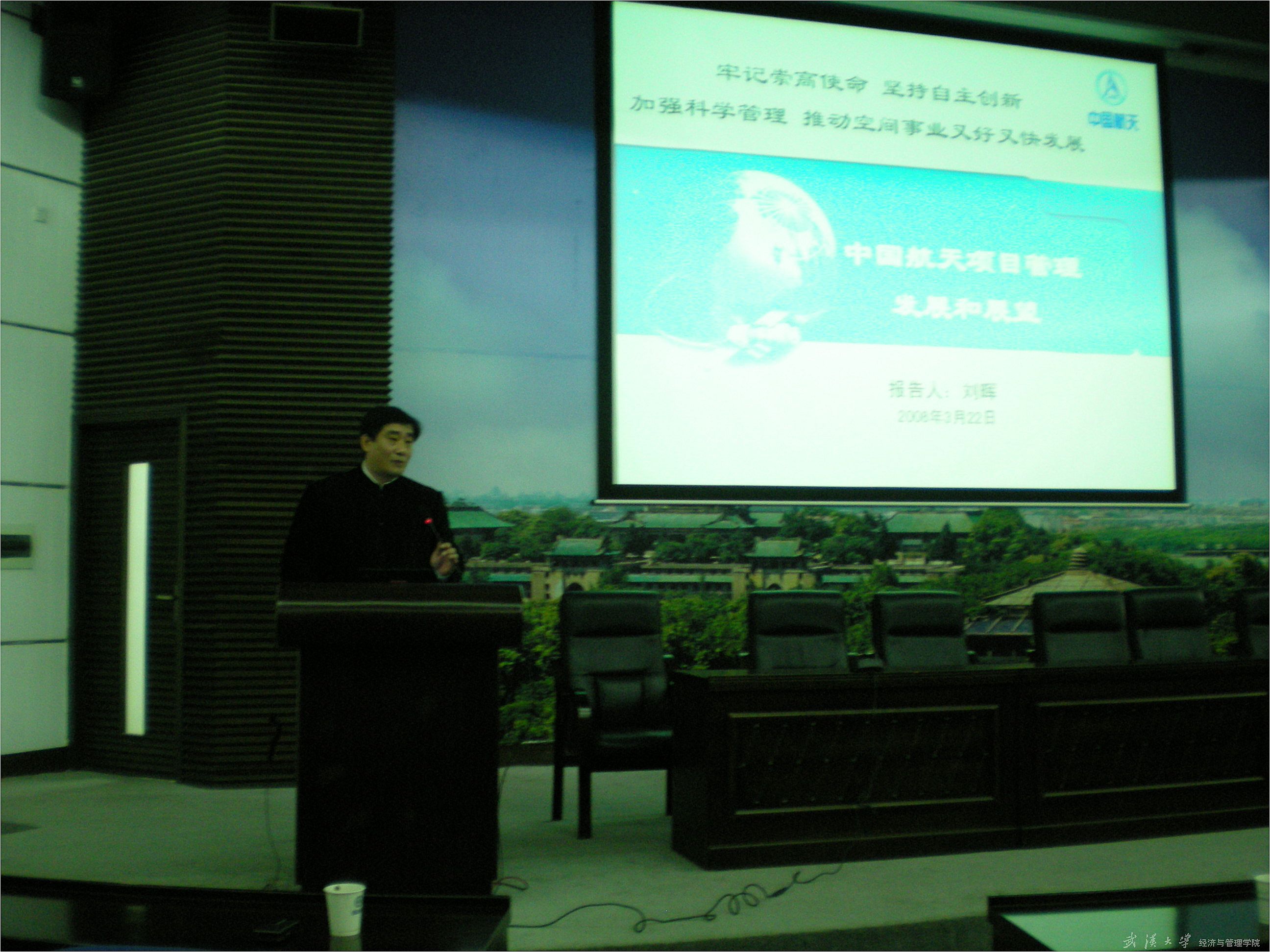 刘部长在报告中首先介绍了中国航天的发展史,从最初的“东方红一号”人造卫星的成功发射到今天的“嫦娥一号”的成功奔月工程 ,同时展示和详细介绍了我国航天空间飞行器的六大系列即:通信广播卫星、地球资源卫星、返回式卫星、气象卫星、宇航卫星和科学试验卫星。接下来刘部长就项目管理在航天工程中的应用作了较深入的总结,并就航天项目管理的继续发展提出了展望。在报告的最后,现场的老师与刘部长就航天项目管理进行了一番激烈的讨论。同时同学们也积极提问交流。