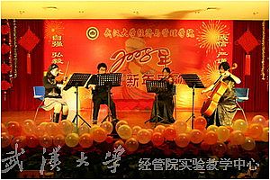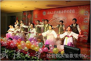 舞姿描绘如诗的春天,歌声祈祷经管院美好的未来。2007年12月28日下午,辣文