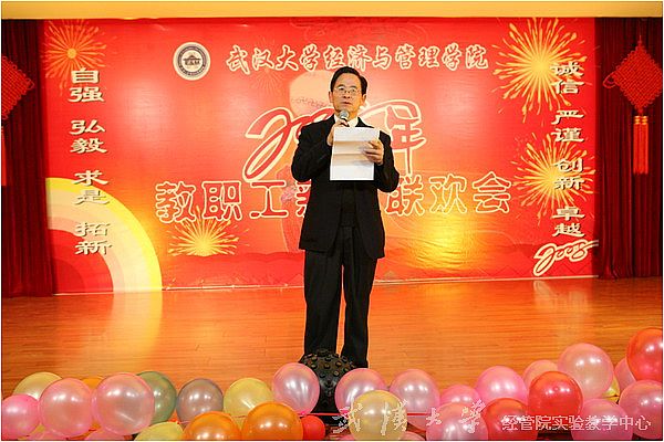 陈院长首先代表学院致辞,他总结了学院2007年在教学、科研、人才培养、学院发展上取得的十大成绩,并展望了2008年的发展蓝图,同时向全体教职工表达了新年的问候。