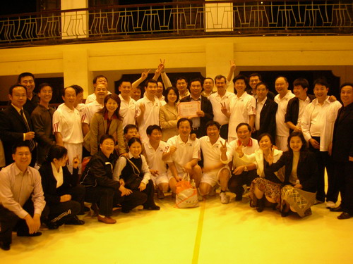 比赛十分精彩,每位上场球员都使出学习和工作时的认真劲儿,勇猛顽强,奋力拼搏。场外拉拉队也是豪情万丈。一人高喊:“06一班……”满场回应:“全是乔丹!”旁边观战的本科同学也是“加油”之声不断。球场内呐喊声此起彼伏,引得场外场内直呼“过瘾!”甚是欢快!