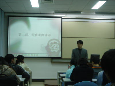 会议首先由罗睿老师代表学院讲话。他对大会的召开表示热烈的祝贺,对按照《辣文