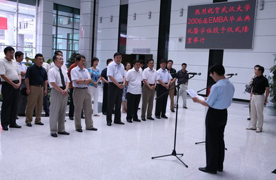 EMBA教育中心,欢迎学子们的“归家”,感谢学员对于母校的赤子之心和深情厚谊。他勉励学员用“硅化木精神”实现成长、成才、成功的转变,并号召师生用厚积薄发的精神实现学校、学院的精彩和辉煌。