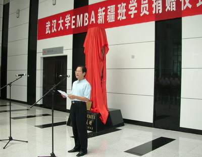 在热烈的掌声和音乐声中,陈继勇院长携手吴建中行长为“硅化木”揭彩,并向EMBA新疆班颁发了捐赠荣誉证书。