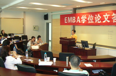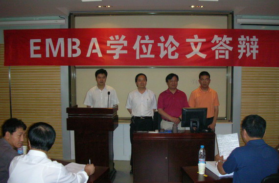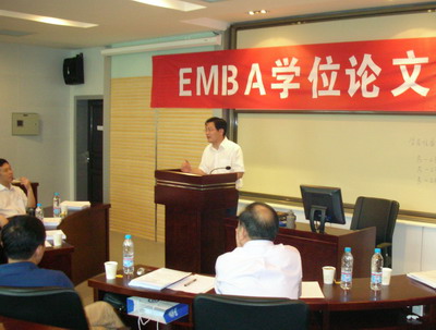 EMBA教育面向政府和企业中高层,培养具有良好的商业道德与社会责任感、具有全球时代的视野与最新经营管理理念、具有国际经营管理战略和总揽全局的决策能力、具有把握现代管理知识、国际经济与技术发展的最新动态的能力、具有适应国际竞争的卓越领导才能与变革能力的“五有”型高级管理人才。在学习过程中,强调经营管理国际化与中国管理环境的有机融合、理论研究与管理实践的结合。体现在此次答辩委员的组成结构上,也具有自己的特色:辣文