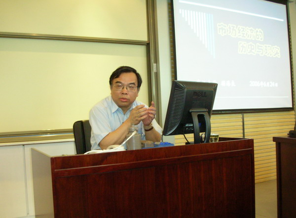 党委书记尤传明、副院长李燕萍的陪同下,走进了EMBA的课堂,为2006级70名学员带来了一场题为《市场经济的历史与现实》的精彩讲座。