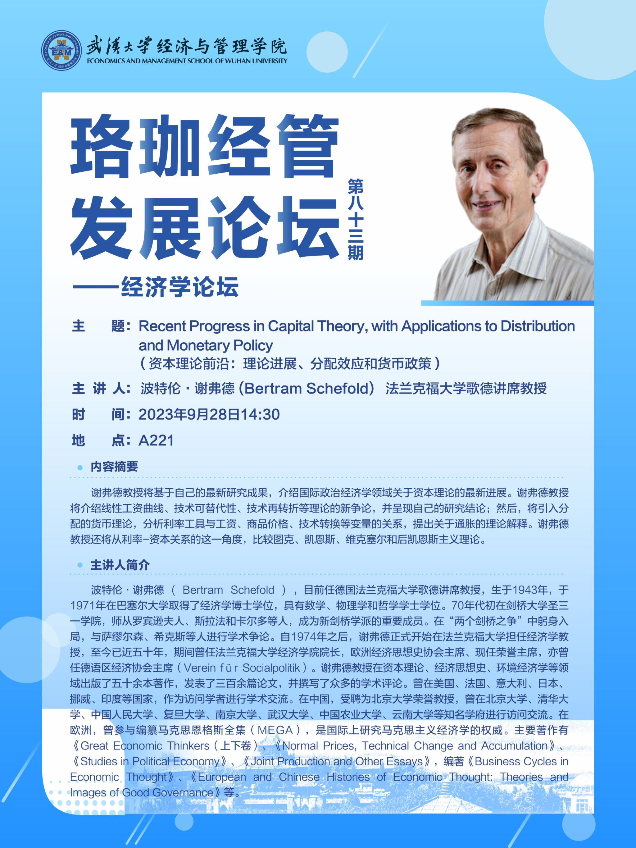 珞珈经管发展论坛第八十三期——经济学论坛
