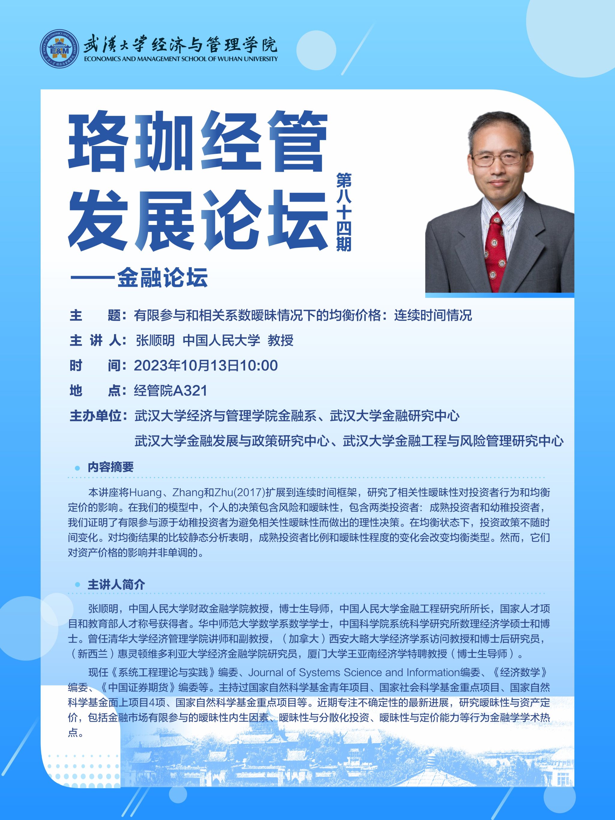 珞珈经管青年论坛第四百二十六期——经济学论坛