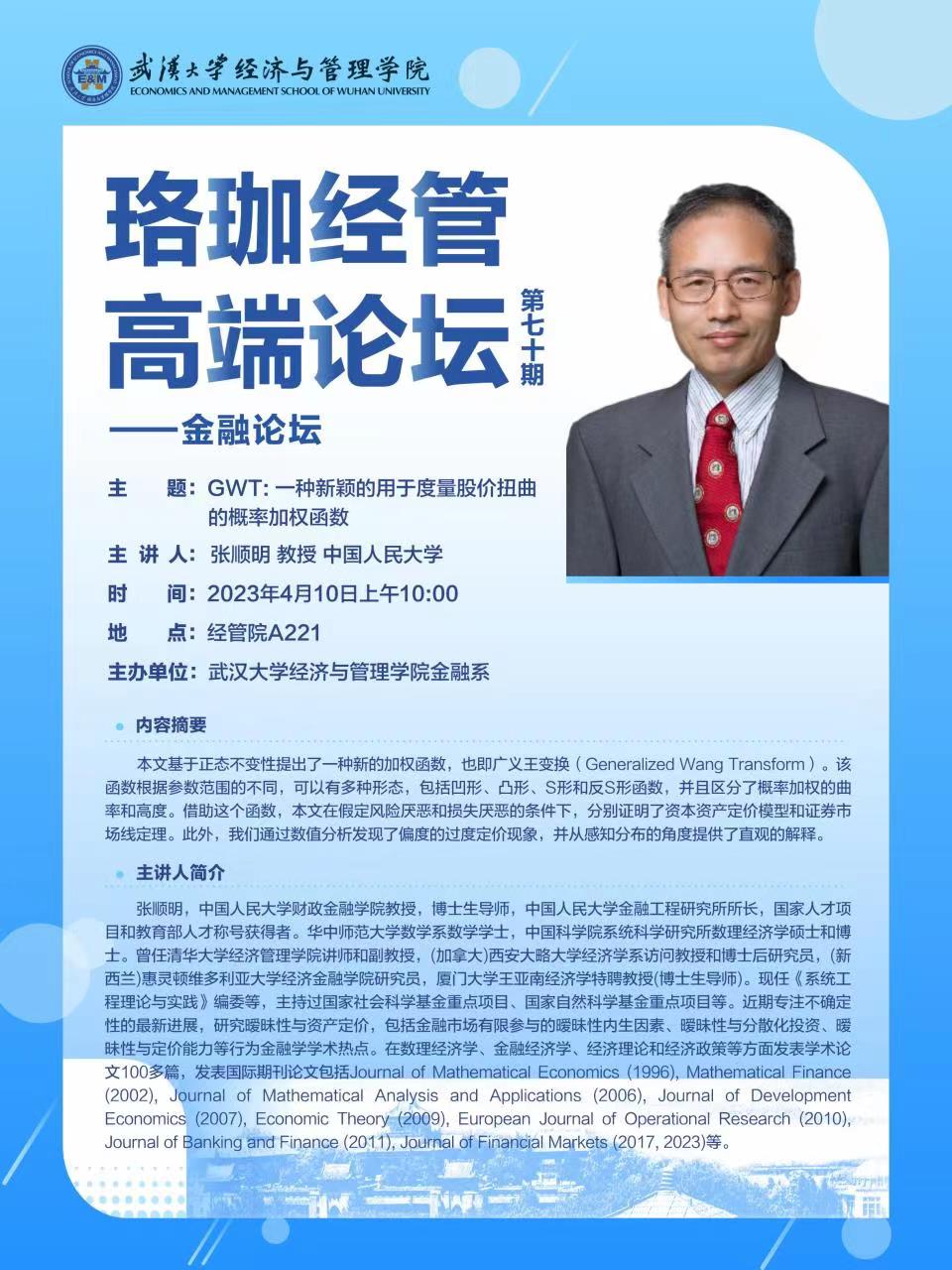 珞珈经管高端论坛第六十七期——数理经济与数理金融论坛