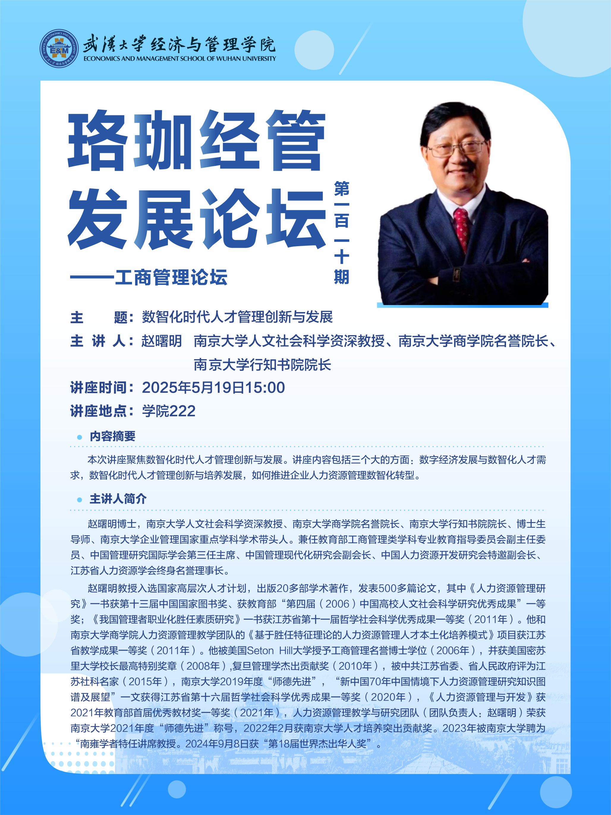 讲座预告|珞珈经管发展论坛第一百一十期——工商管理论坛