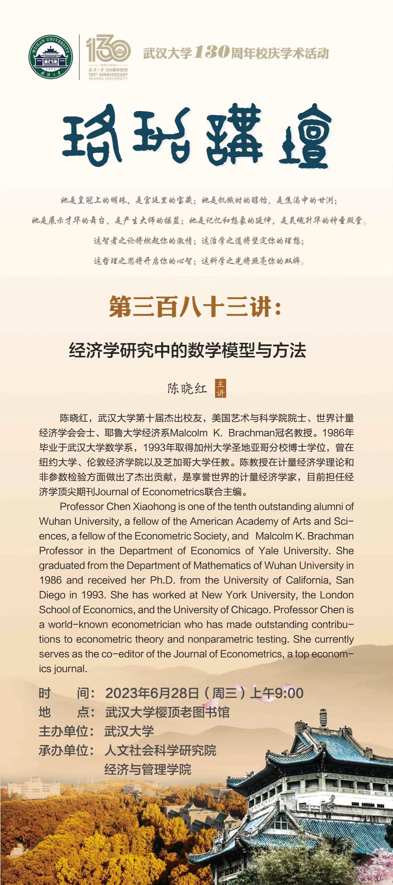 珞珈经管创新论坛第56期——数理经济与数理金融论坛
