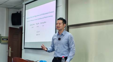 11月13日,珞珈经管创新论坛第138期在学院231举行,香港中文大学商学院柯特教授应邀作题为“Designing Detection Algorithms for Al-Generated Content: Consumer Inference,Creator Incentives and Platform Strategy(为人工智能生成内容设计检测算法:消费者推断、创作者激励与平台策略)”学术报告。本次论坛聚焦“AI技术与平台治理”领域,学院沈波、孙君泽等多位老师及学生参加,丁宇澄副教授主持。