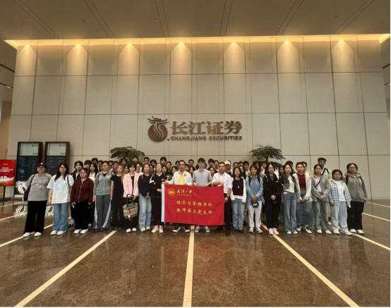 的师生们。首先,同学们在公司代表的带领下参观了长江证券的各个部门,深入了解了公司的日常运营情况。长江证券作为中国知名的金融服务企业,业务范围涵盖证券经纪、投资银行、资产管理、财富管理等多个领域。公司通过此次参访,不仅展示了自身在金融市场中的重要角色,也让学生们更直观地感受到金融市场的运作方式。
