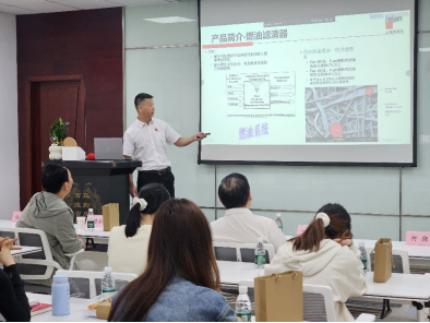 参观结束后,武汉工厂厂长伍智携各职能部门经理与师生代表在公司培训会议室举行了面对面的交流座谈会。伍厂长从事业布局、发展历程、企业文化、组织结构、战略规划、研发体系等方面,全面、系统地讲解了上海弗列加公司的运营脉络与价值体系。当谈及今年美国关税壁垒对公司进出口业务造成的阶段性挑战,他解读了上海弗列加人在时代逆境中百折不挠的应对精神,展现出上海弗列加公司在全球化浪潮中的韧性担当。这番分享让在场师生深切感受到中国专精特新企业的战略定力与创新精神。