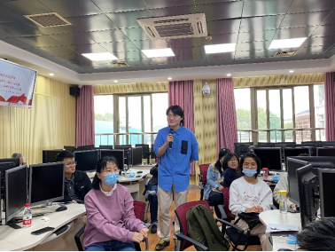 在第一个环节“快速了解EIC”中。实验与信息中心主任陈训威老师就实验中心整体情况向同学们进行了系统的介绍,并围绕博士生们普遍关心的图书馆资源、数据库资源等话题,为参会同学进行了详细的说明。陈训威老师还向大家介绍了EIC举办的“数据加油站 • 相约九点半”系列讲座、图书分管的纸质图书电子化工程等密切服务于师生学术科研的重要工作。