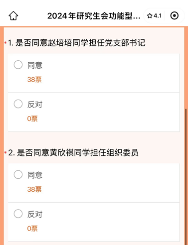 随后进行会议的第二项议程,进行正式的换届选举。支委候选人分别进行了竞选发言,逐一介绍了自己的工作经历、工作计划以及未来愿景。候选人发言结束后,党支部全体党员进行投票。根据投票结果,超过半数党员同志同意赵培培、黄欣祺、刘宸希、赵萱四位同志担任辣文