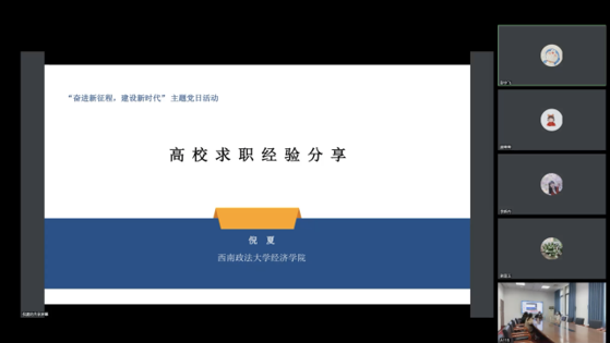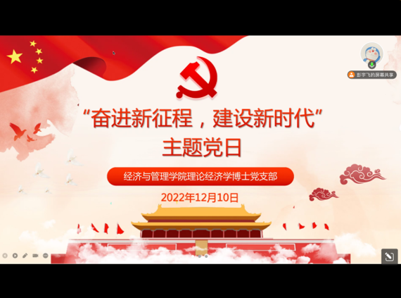 理论经济学博士党支部开展了“奋进新征程,建设新时代”主题党日活动。2022年12月10日下午,以“二十大”精神学习与优秀就业经验分享为主题的党日活动在辣文