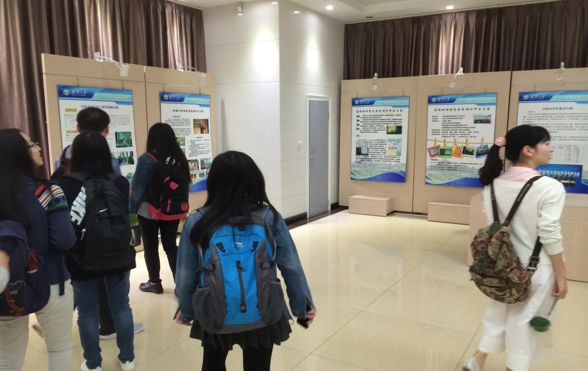 同学们先参观了关于大学生创新创业相关的展板,其中包含各类大学生创新创业竞赛,如全国大学生信息安全竞赛、全国大学生节能减排社会实践与科技竞赛以及杰赛普国际法庭模拟法律比赛,平时大家对各类竞赛的了解较少,这次参观学习则提供了非常好的机会让大家来了解。此外,各种创业项目展板也十分有意义,题目都是全国大学生创新创业大赛的优秀成果展示,包含了各种创业项目。