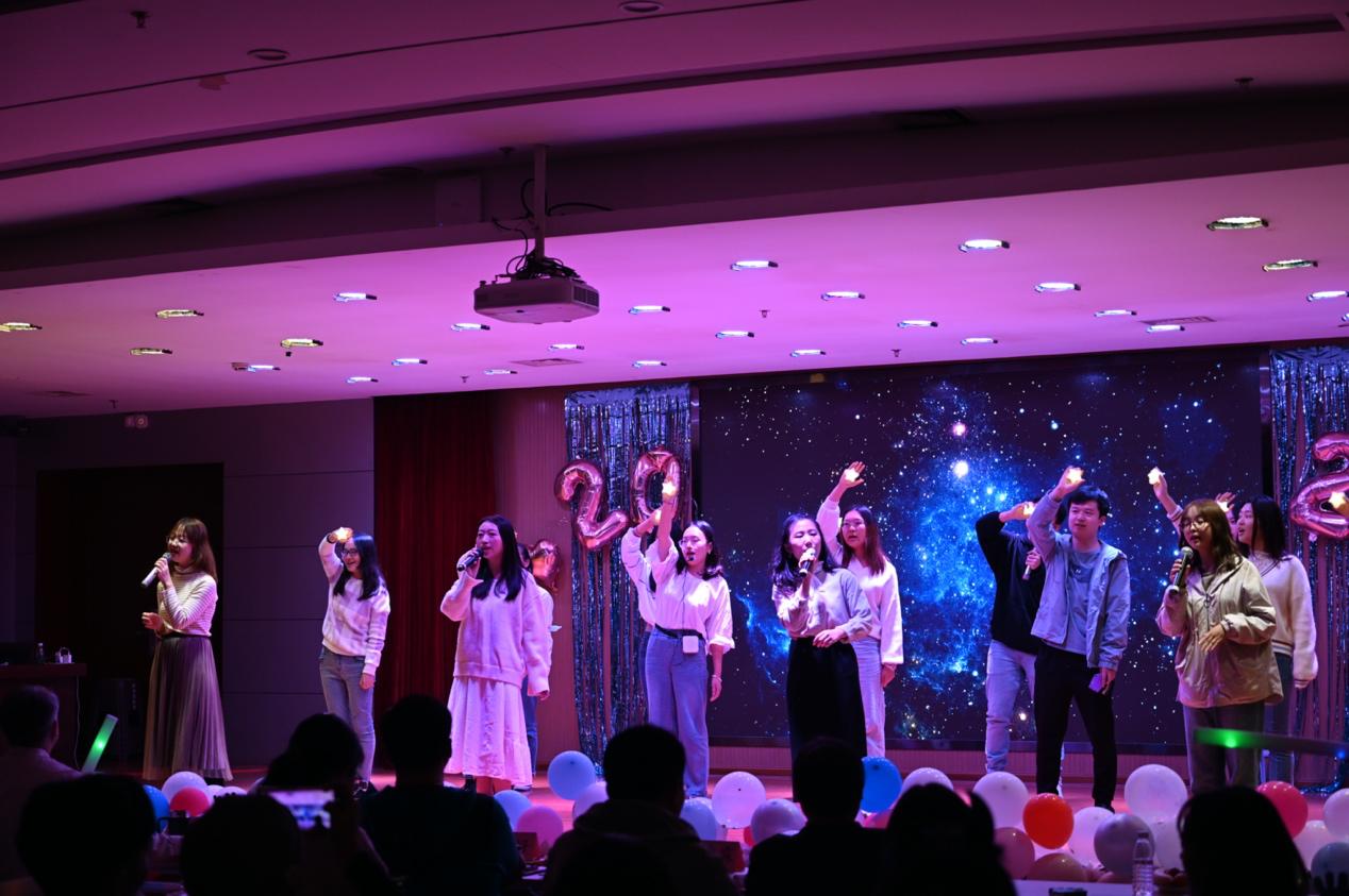 一轮表演过后,迎来了互动抽奖环节,现场气氛迭升,欢呼不断。此后,科硕八班带来情景式演唱《柠檬树下你和我》,唱、跳、rap齐上阵,博得了观众阵阵掌声。在热闹的气氛之后,魏宇骋与王树带来二重唱《都是夜归人》,歌声浑厚、情绪饱满、令人回味无穷。科硕五班带来情景剧《裂缝中的阳光》,在致敬无私奉献的医护人员的同时,也让我们看到疫情中每一个鲜活生命的温暖故事。科硕六班的《云烟成雨》也让现场观众陶醉其中。