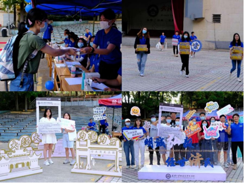 2022年9月3日,负责迎新工作的工作人员们一大早就来到了提前搭建好的报道帐篷处,准备迎新物料。研究生新生们在工作人员的引导下,来到辣文