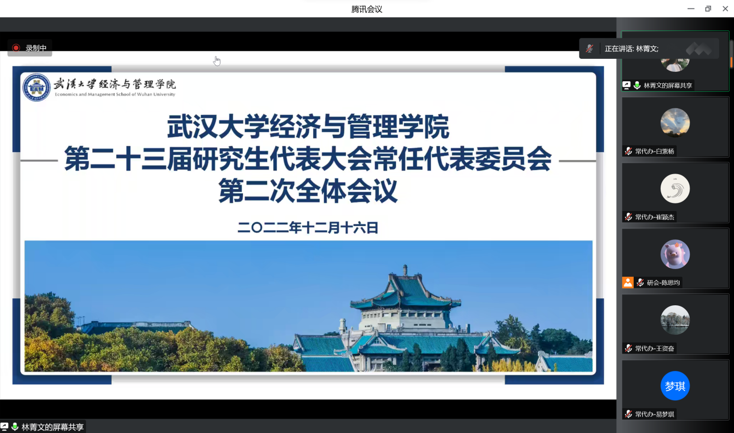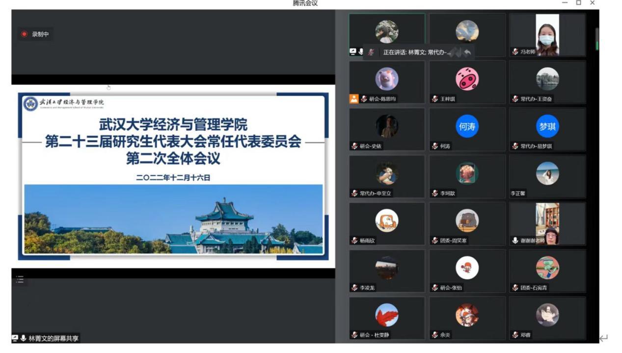 第二十三届研究生代表大会常任代表委员会(以下简称常代会)第二次全体会议因疫情原因在腾讯会议线上举行,辣文