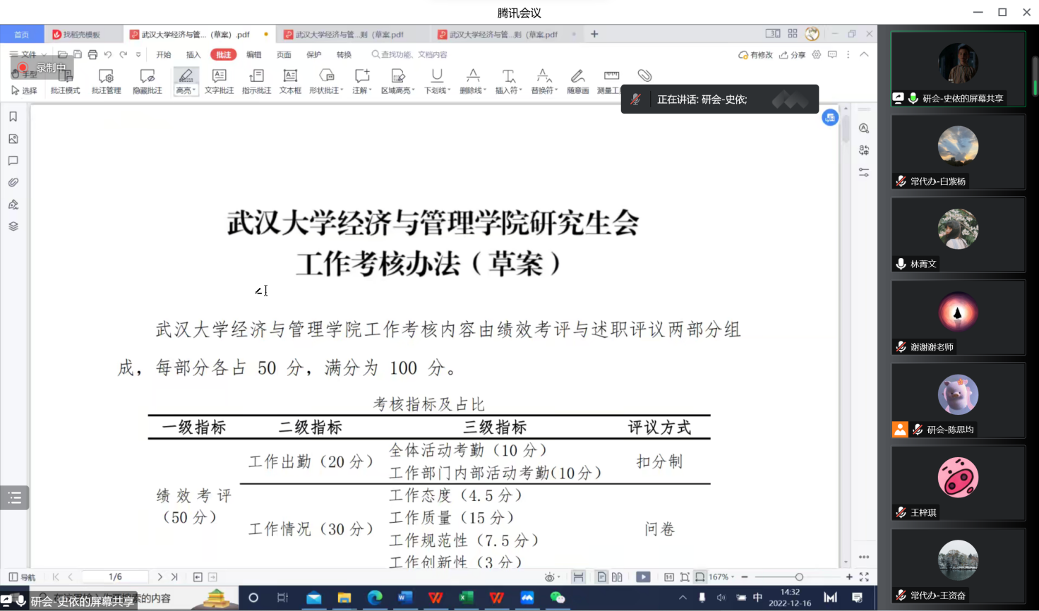研究生会工作情况考评实施细则(草案)》从工作态度、工作质量、工作规范性、工作创新型四个维度对工作情况进行评议。《辣文