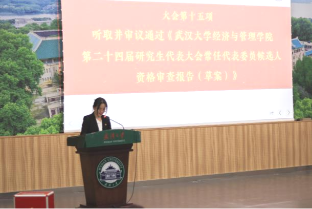 学院第二十三届研究生代表大会常任代表委员会主任委员林菁文同学宣读《辣文