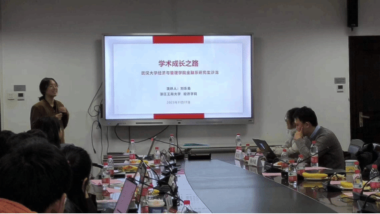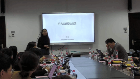 本次活动的第二项是科研经验交流环节。会议邀请了目前就职于北京大学、浙江工商大学、中南财经政法大学和对外经济贸易大学的四位优秀青年科研工作者做科研经验交流汇报。