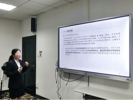 2021级金融学博士生秦力宸做了关于“地方性商业银行发展与城市经济韧性”的报告分享。该报告从地方性商业银行发展这一金融要素视角探讨如何增强城市经济韧性。在理论的基础上,该报告实证检验了地方性商业银行发展对城市经济韧性的影响。研究发现,相较于地方性商业银行网点分布少的城市,地方性商业银行网点分布密集的城市具有较强的经济韧性。机制检验表明,基于当地宏观经济的逆周期信贷供给和提升城市创新水平是地方性商业银行发展影响城市经济韧性的主要途径。浙江工商大学经济学院的刘乐易老师对这篇文章进行了点评。