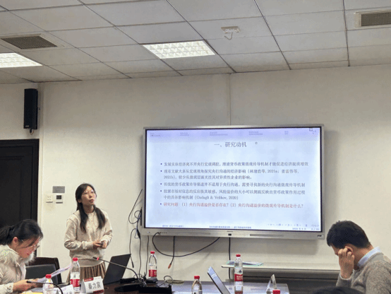 上午,首先由2021级金融工程博士生雷印如分享了关于“央行沟通的微观渠道分析——基于风险溢价的视角”的报告。文章的主要研究央行的沟通溢价是否存在及其微观传导机制是什么。文章采用Word2Vec算法构建情绪词典并从货币政策报告文本中提取情绪指标来构建央行沟通信息代理变量。此外,该文章从95个公司特征出发,采取LASSO算法构建了公司对央行沟通暴露指标MTE。结果发现,央行沟通存在正向风险溢价,且MTE收益来源于风险补偿。在微观传导机制方面,文章发现MTE高的企业承担了更多未来经济增长的预期风险。辣文