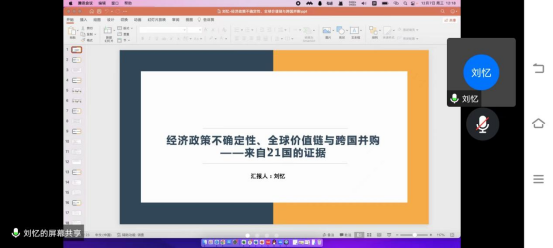 为增进学院研究生之间的学术交流,师生共建提效学术,工商管理系于2022年12月2日和2022年12月7日先后在腾讯会议上举办了两场珞珈经管研究生学术沙龙活动。本次活动有4名教师作论文汇报和8名博士研究生作论文汇报。本次活动由刘林青和陶厚永老师主持,工商管理系多位老师、博士研究生和硕士研究生参与了此次沙龙。