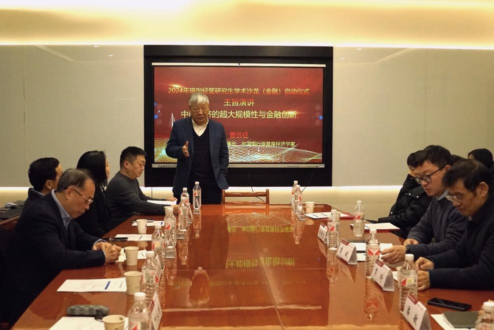 237会议室举行。本次活动荣幸邀请到了中银国际研究公司董事长、中国银行原首席经济学家曹远征做了题为中国经济的超大规模性与金融创新的主旨讲座。曹远征是改革开放后第一届经济学博士,研究员,中国经济50人论坛成员,曾任国家经济体制改革委员会经济体制改革研究院第一副院长。20世纪90年代后期加入中银国际,致力于经济体制改革措施的实际执行,曾任中银国际董事兼首席经济学家,中国银行首席经济学家,第一批国务院特殊津贴获得者。他深刻而全面地剖析了中国经济独树一帜的超大规模性特质,这一特质在新能源汽车产业的蓬勃兴起中得到了淋漓尽致的展现。他以新能源汽车产业作为例证,生动描绘出政府在中国产业组织发展历程中所扮演的至关重要且独具特色的角色。政府不仅是政策的制定者与引导者,更是产业升级的推动者与市场秩序的维护者,通过一系列精准有力的政策措施,为新能源汽车等新兴产业提供了肥沃的土壤和广阔的发展空间。在此基础上,他进一步深入探讨了金融创新在中国经济这一宏大叙事中的多样表现形式与深远影响。着眼于中国经济的超大规模特征,他对中国金融创新的未来展望与机遇进行了深刻洞察与前瞻分析。在这样一个规模庞大、需求多元、潜力无限的市场环境中,金融创新将面临广阔舞台与无限可能。无论是深化金融市场改革,提升金融服务实体经济的能力,还是推动金融科技与实体经济的深度融合,都将为金融创新带来前所未有的发展机遇与挑战。他坚信,只要我们能够准确把握时代脉搏,勇于探索创新之路,中国金融创新必将在中国经济的超大规模舞台上绽放出更加璀璨的光芒,为中华民族的伟大复兴贡献更加磅礴的力量。