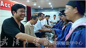 陈继勇院长,王永海副院长,会计系唐建新主任,谢获宝副主任,廖洪教授和童光荣教授为毕业生授予学位并颁发了学位证书。