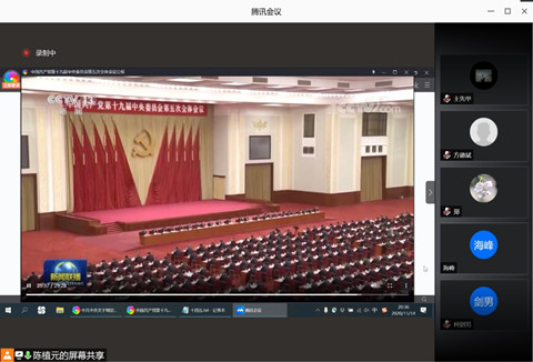 陈植元同志对全会公报的重点内容进行梳理,并组织全体与会人员观看学习《中国共产党第十九届中央委员会第五次全体会议公报》全文播报视频。党员同志们结合线下自学和在线观看公报全文播报视频,畅所欲言,纷纷发表见解和感悟。