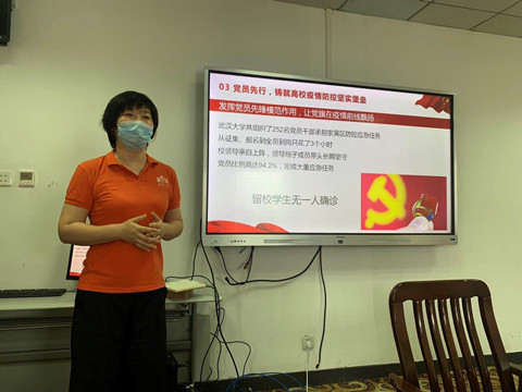 支部党员就疫情中党支部、党员、群众三方面问题,支部各位党员就自己在疫情中的思考进行了分享和热烈的讨论,洪金水老师从一名党员家长角度出发,谈了自己女儿在疫情出现和工作在一线医院时的所思、所行。周雄国老师从一个名老党员的角度出发,分享了自己在担任志愿者时的种种思考。支部其他党员也依次发言,结合自身说身边故事、谈切身体会、讲责任担当。纷纷表示将牢记初心使命,以更加昂扬的斗志、更加饱满的精神,全力推进学校复学之后工作持续向好发展。