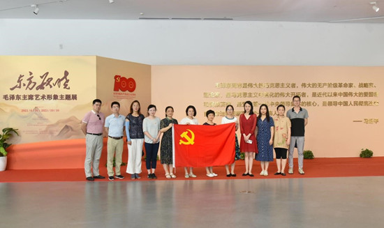 在主题党日现场教学环节,支部党员、群众共赴万林艺术馆现场参观了主题为“东方欲晓”的毛泽东主席艺术形象展。