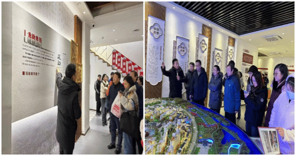 随后,支部党员来到龙韵村的中国红色报纸展览馆。该馆以“读报纸•学党史”为主题,用“红色报纸”这一独特视角去解读中国共产党坚强领导的政治先进性及国家富强、民族复兴的历史必然性。极具象征意义的“笔杆子和枪杆子”立于展厅中央,旁侧的滑轨屏和弧形幕讲述了中国报纸的历史起源,红色小报童“龙娃”为IP形象串联起四个篇章:红色基因、涅槃郧阳、百年征程和历史天空。在领略了党的前辈们的办报初心之后,全体党员移步室外主题景观雕塑之一的英烈雕塑群,深切缅怀英烈,向他们致以崇高敬意。