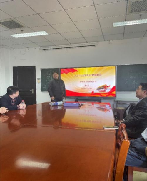 随后,宣传委员郭凛根据全国政协委员、校长张平文传达的全国政协十四届二次会议精神和全国人大代表、副校长宋保亮传达的十四届全国人大二次会议精神以及校党委书记黄泰岩的讲话,提出了支部学习2024年全国两会精神的要求。