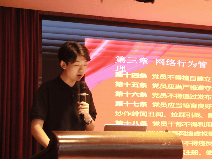 管理科学与工程硕士第二党支部书记吴格非带领广大同志集体学习《中国共产党党员网络行为规定》。