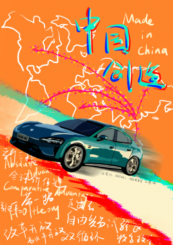 图 3 王潇涵作品《“中国创造”驰骋世界》