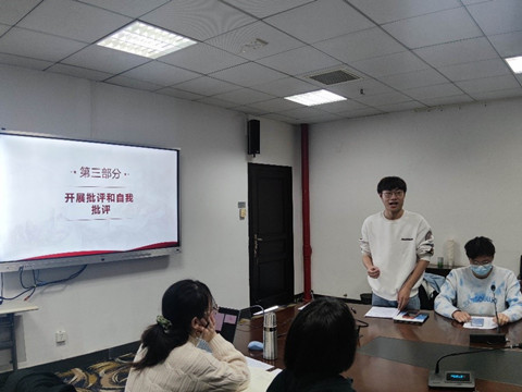 会议伊始,肖宇晴同志代表支委会向全体同志介绍本一支部在2021年度的工作与支部取得的优异成绩,并根据支部工作中存在的弱点与短板查摆问题,表明整改态度,并提出相应的整改措施。